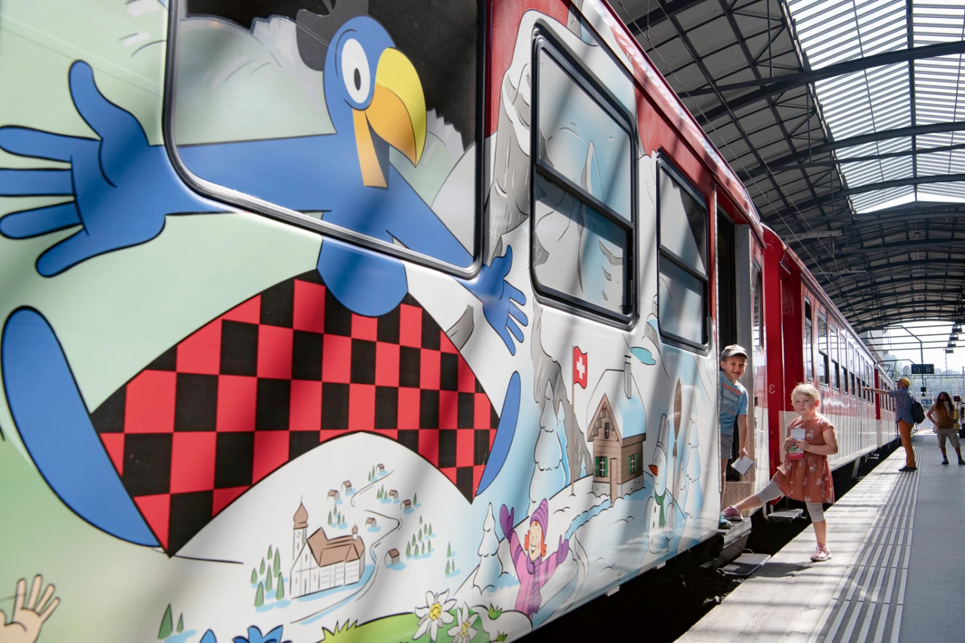 Auf der Reise nach Engelberg taucht die Kultfigur an den Haltestellen immer wieder auf. Wer genau beobachtet, kann das Globi-Rätsel lösen und mit etwas Glück eine tolle Überraschung gewinnen. Nach der Fahrt im Globi-Express muss man sich nicht etwa von Globi verabschieden. Nachdem die Überraschung am Bahnhof in Engelberg abgeholt wurde, geht die Reise mit Globi weiter.