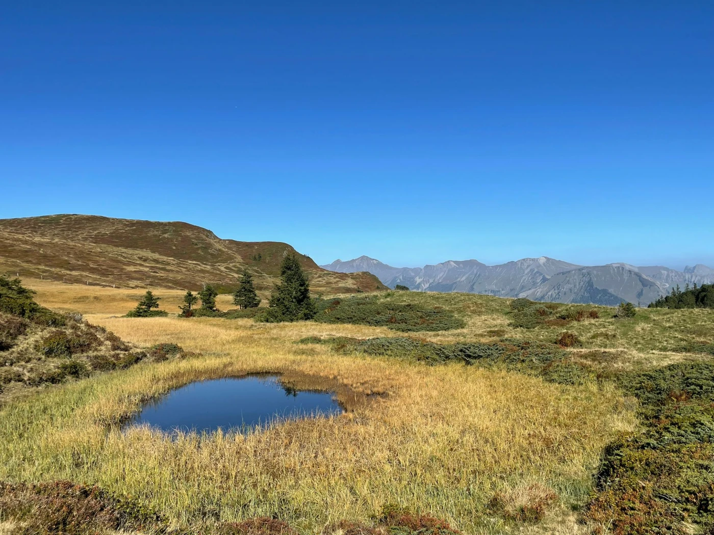 Besonders im Herbst mit seiner Farbenpracht ein Erlebnis der besonderen Art. Wenn sich diese farbenprächtige Pflanzenvielfalt und die Berge in den Pfützen und dem Seelein spiegeln – einfach überwältigend! Die Aussicht hoch über dem Haslital bis weit in die Zentralschweiz ist wunderschön.