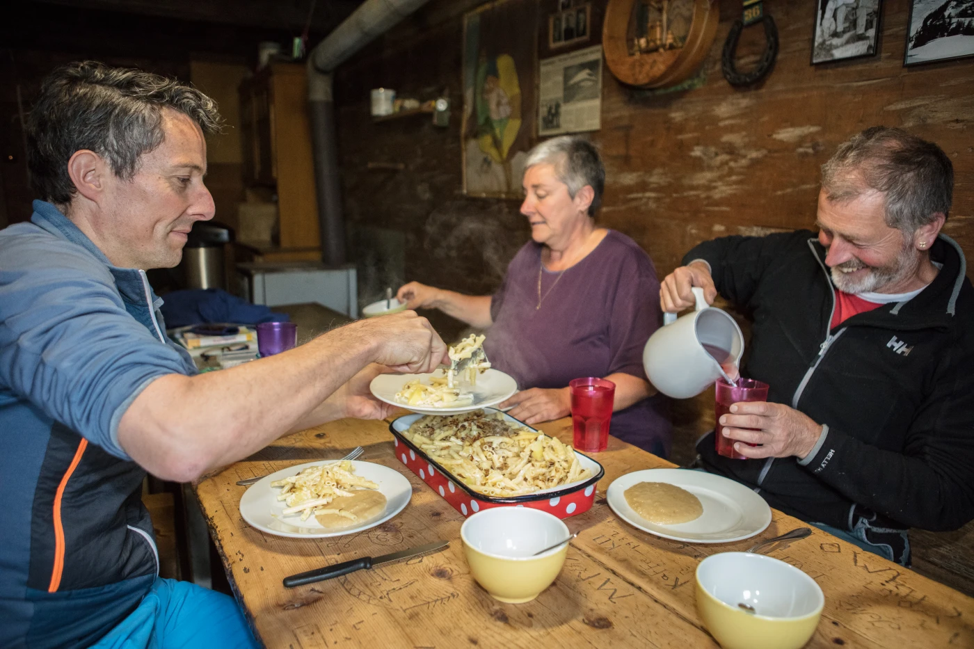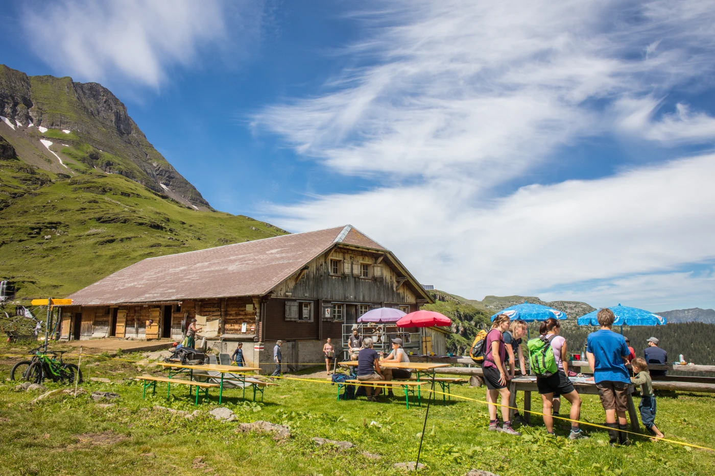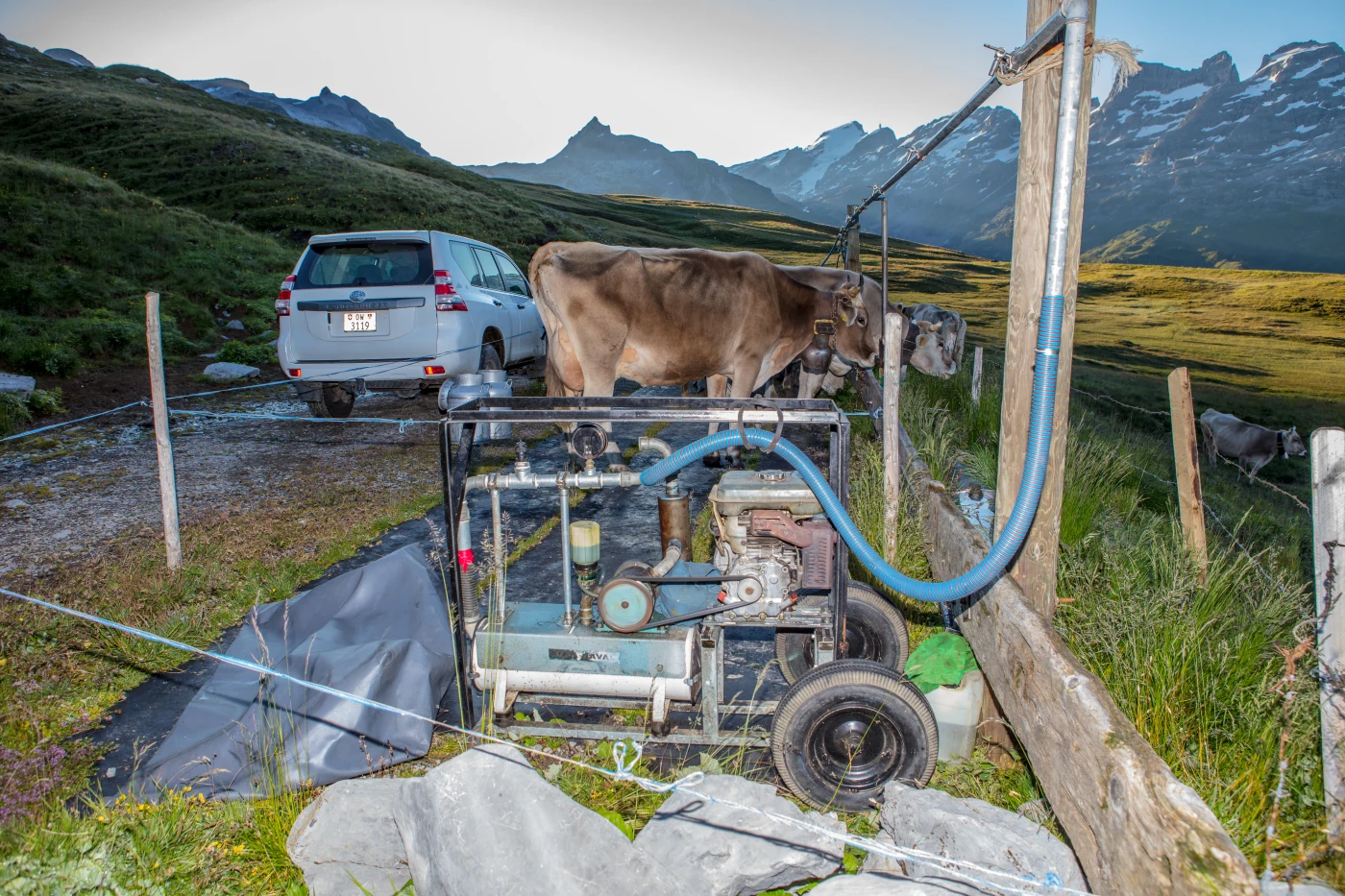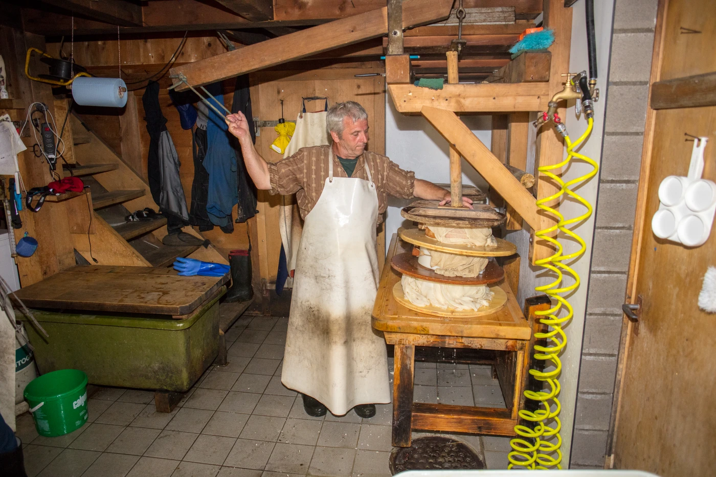 Auf der Alp Tschingelfeld gibt es zwei Alpwirtschaften. Während Paul Grossmann im Gebäude des Senntums Ringgenberg Käse herstellt, macht dies seine Frau im Gebäude des Senntums Brienz. Ken-nengelernt haben sich die beiden hier oben auf dem Tschingelfeld. Seither verbringen sie hier jeden Sommer. Von ihren sechs Kindern begleitet sie inzwischen nur noch Simon, welcher den heimischen Hof in Brienz sowie die Alpwirtschaft Schritt für Schritt übernehmen wird. Paul Grossmann: «Wenn ich 65 Jahre alt bin, soll der gesamte Übergabeprozess abgeschlossen sein. So haben wir bereits eine Generationengemeinschaft, durch welche Simon Besitzer von 50% der Kühe ist und laufend immer mehr übernimmt.»