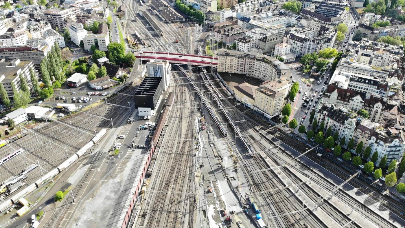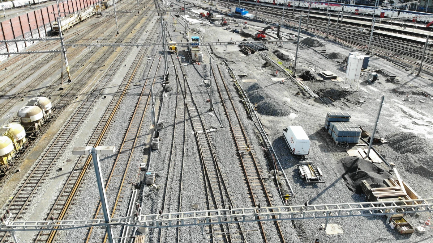 Wo vor dem ersten Bahnhofbau (1856-1859) ein sumpfiges Gebiet vorherrschte, liegt heute das Gleisfeld. Der Baugrund ist entsprechend anspruchsvoll. Steckt man eine Schaufel in den Grund, trifft man vielfach auf Wasser. «Das Wasser müssen wir örtlich mit dem sogenannten Wellpoint-Verfahren absenken. Dabei saugen Vakuumpumpen Wasser ab und sammeln dieses in einem Becken um anschliessend das Wasser in die Sickerleitung einzuleiten», so Simioni. Die Arbeiten laufen trotz dieser und weiteren Herausforderungen programmmässig. Im Sommer wurden viele Arbeiten rund um die bestehenden Betriebsgleise ausgeführt, im Herbst wird die eigentliche Doppelspur gebaut, damit im Dezember 2021 die Doppelspur dem Betrieb übergeben werden kann.