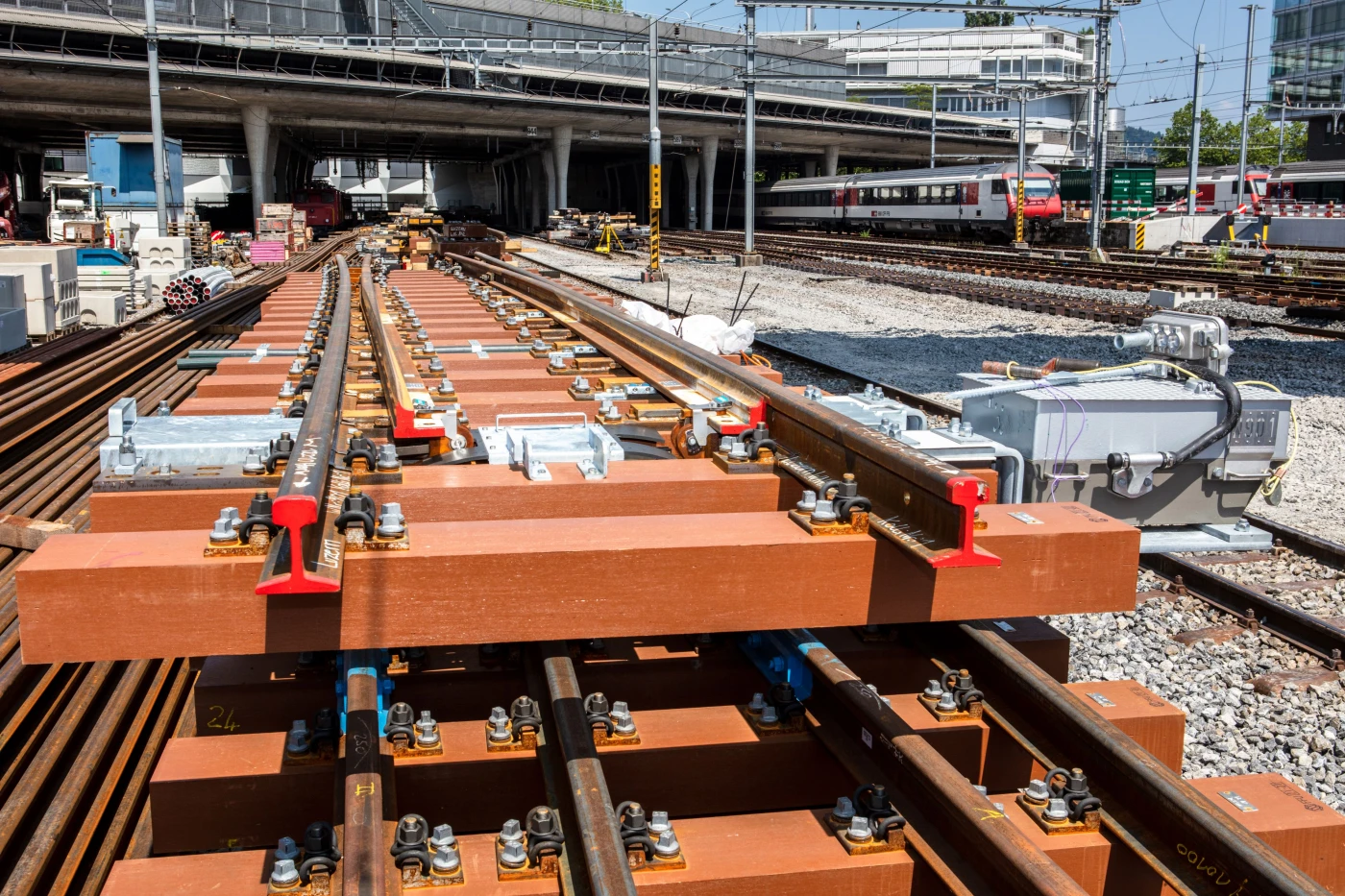 Die Logistik bei diesem Bauwerk ist aufgrund des zeitgleichen Bahnbetriebs anspruchsvoll und komplex: Lastwagen, die Material bringen und Bauschutt abtransportieren, ein- und ausfahrende Züge, Strom auf den Fahrleitungen; all dies muss durch die Bauleitung und die Unternehmer koordiniert sein. Entsprechend zeitintensiv ist diese Arbeit. Rund 25 Arbeiter sind täglich von Montag bis Freitag gleichzeitig im Einsatz und bringen das Bauwerk voran. Zu Spitzenzeiten wird im Drei-Schicht-Betrieb während sechs Tagen gearbeitet.