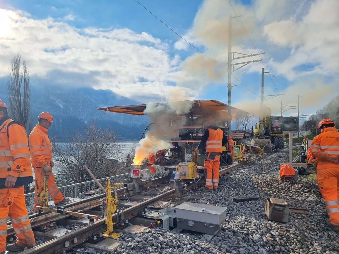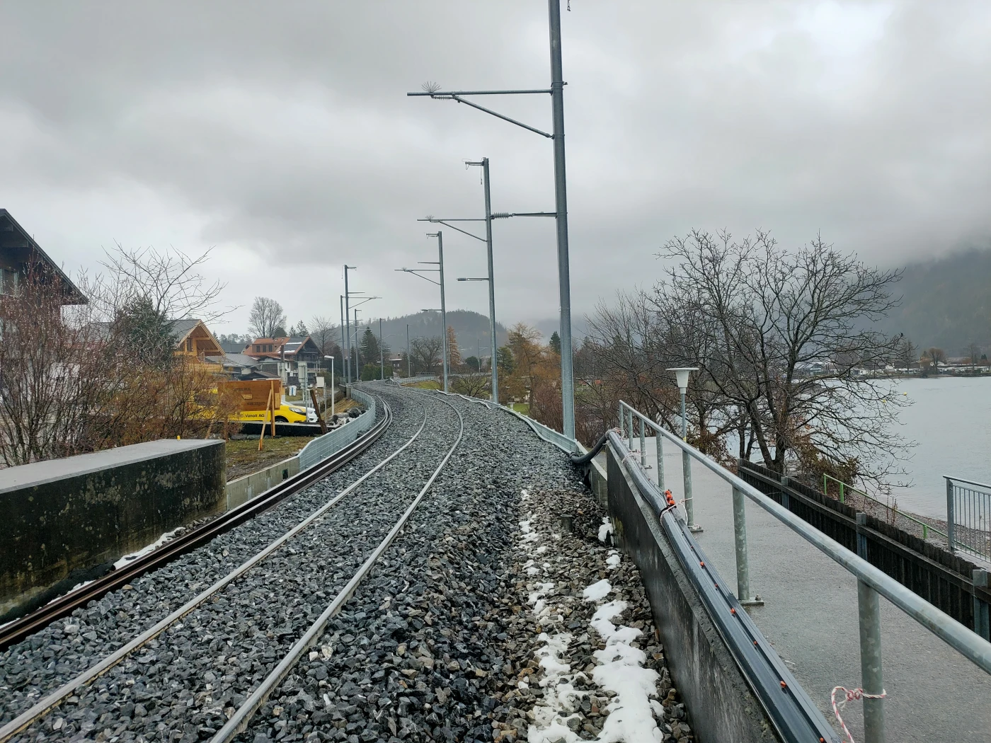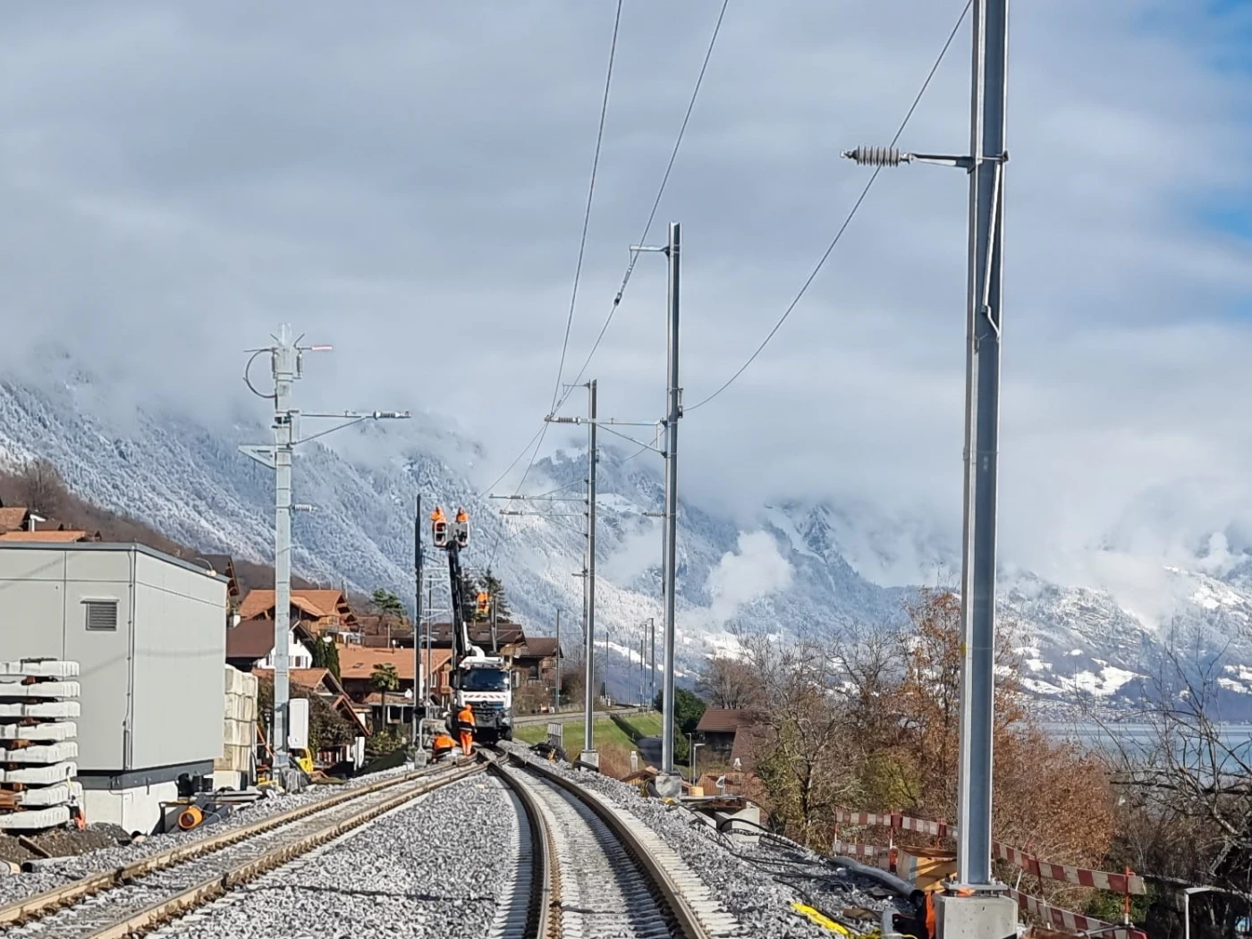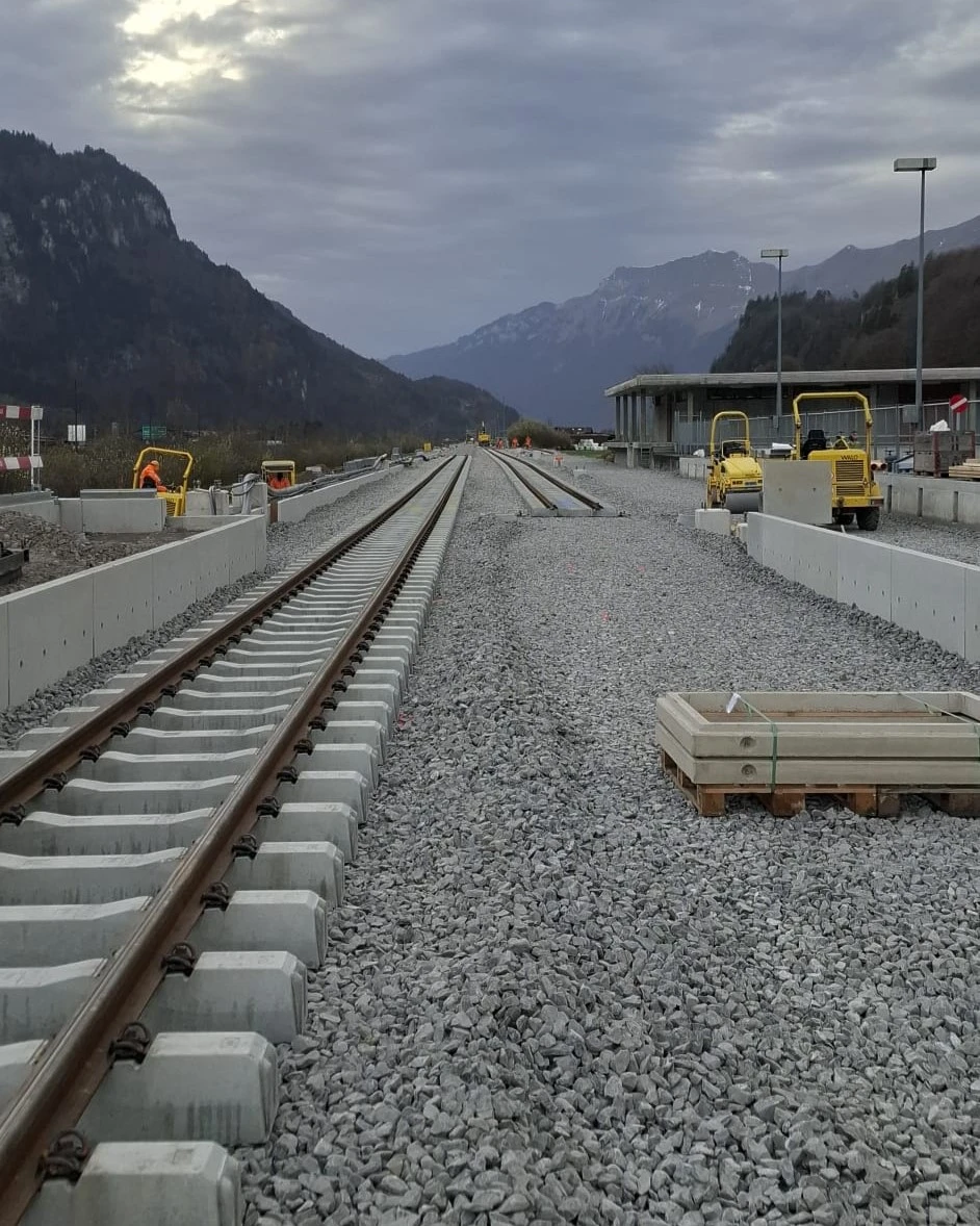 Interlaken Ost From November 4 to December 21, 2025, work will be carried out in two shifts, Monday to Saturday between 5:00 a.m. and 12:30 a.m. Exception: The finishing work on the overhead lines will be carried out on Sunday, December 14, 2025. Reserve date: If necessary, the remaining tamping and leveling work will take place on Sunday, December 7, 2025.