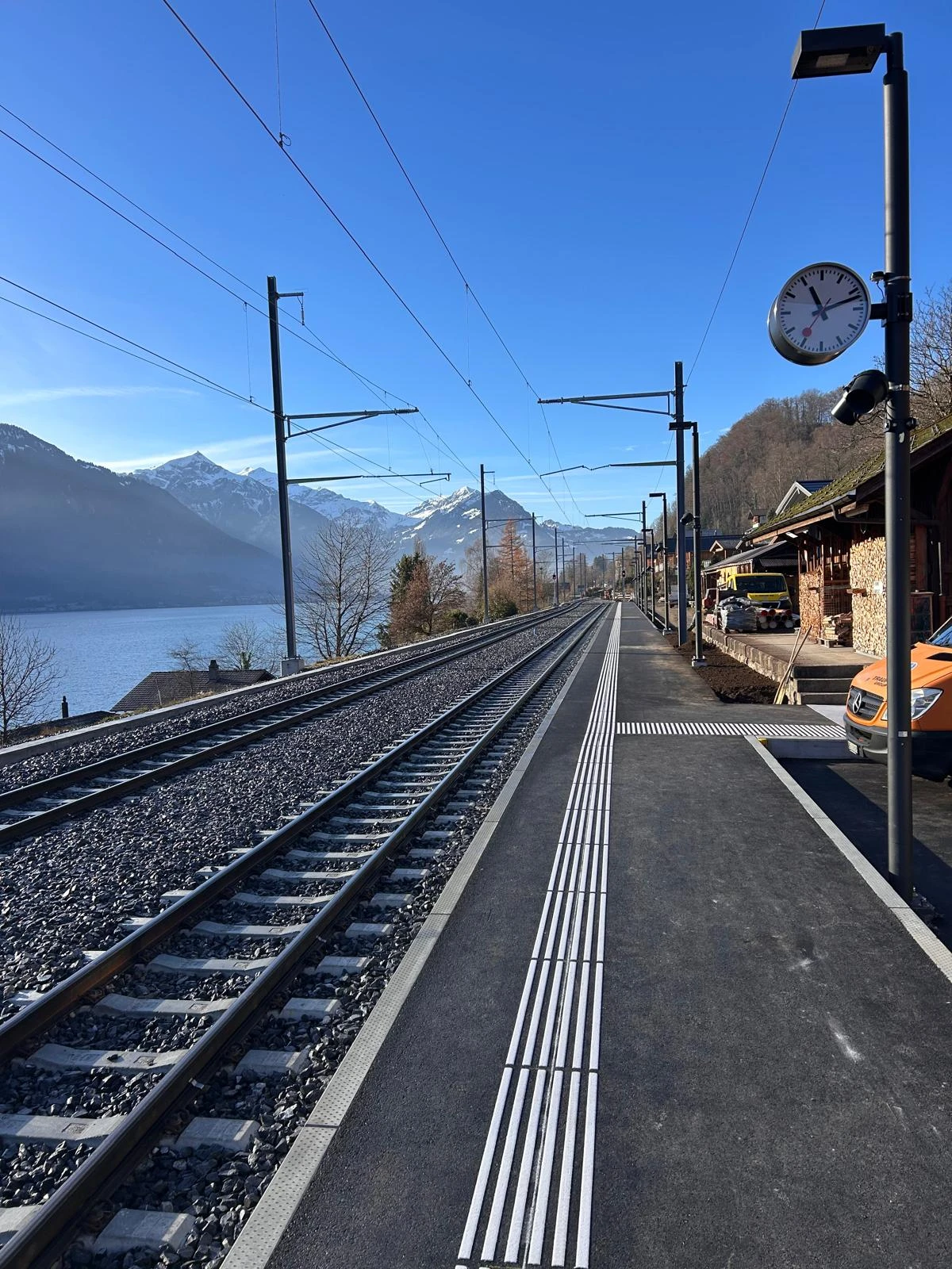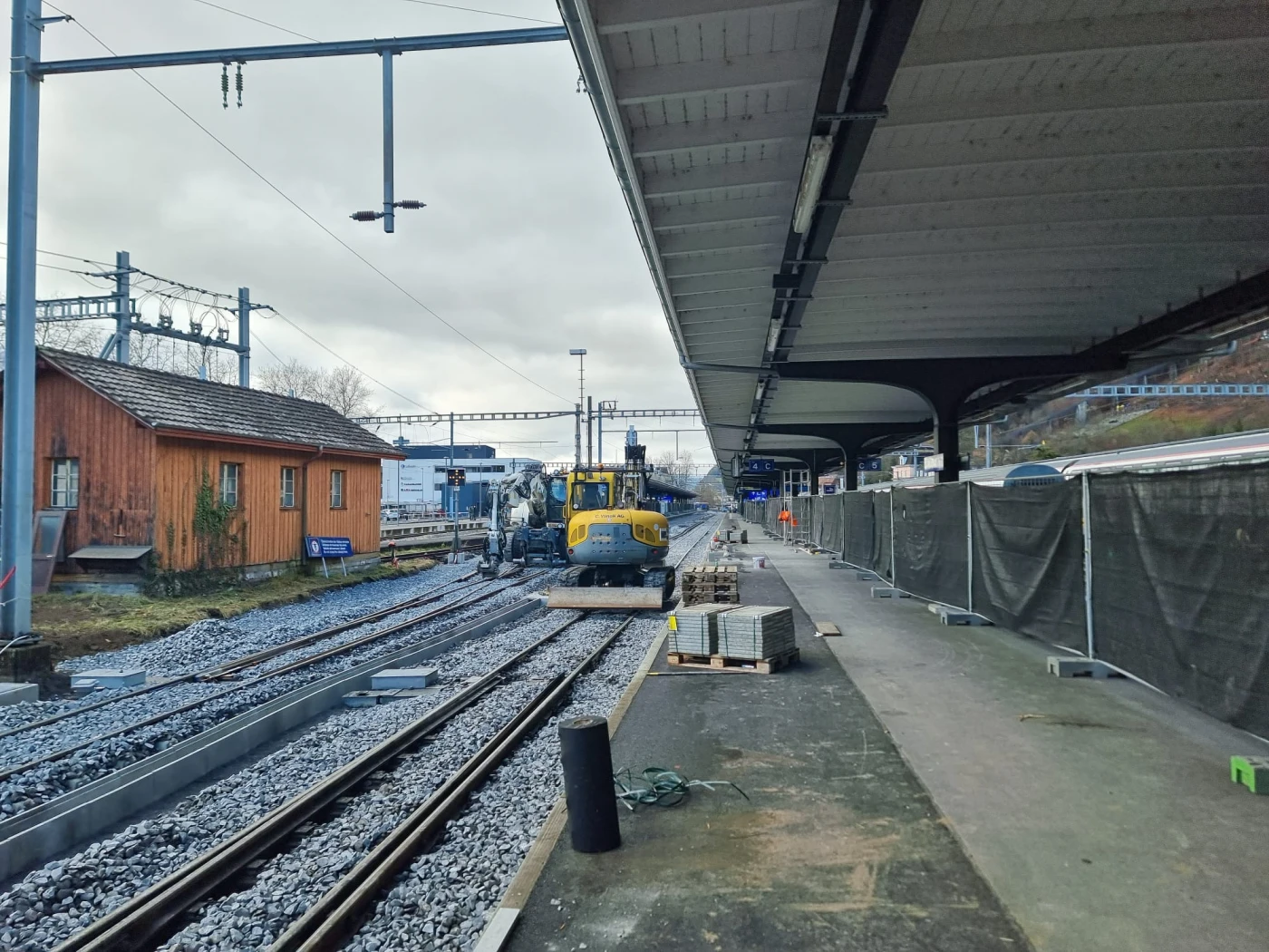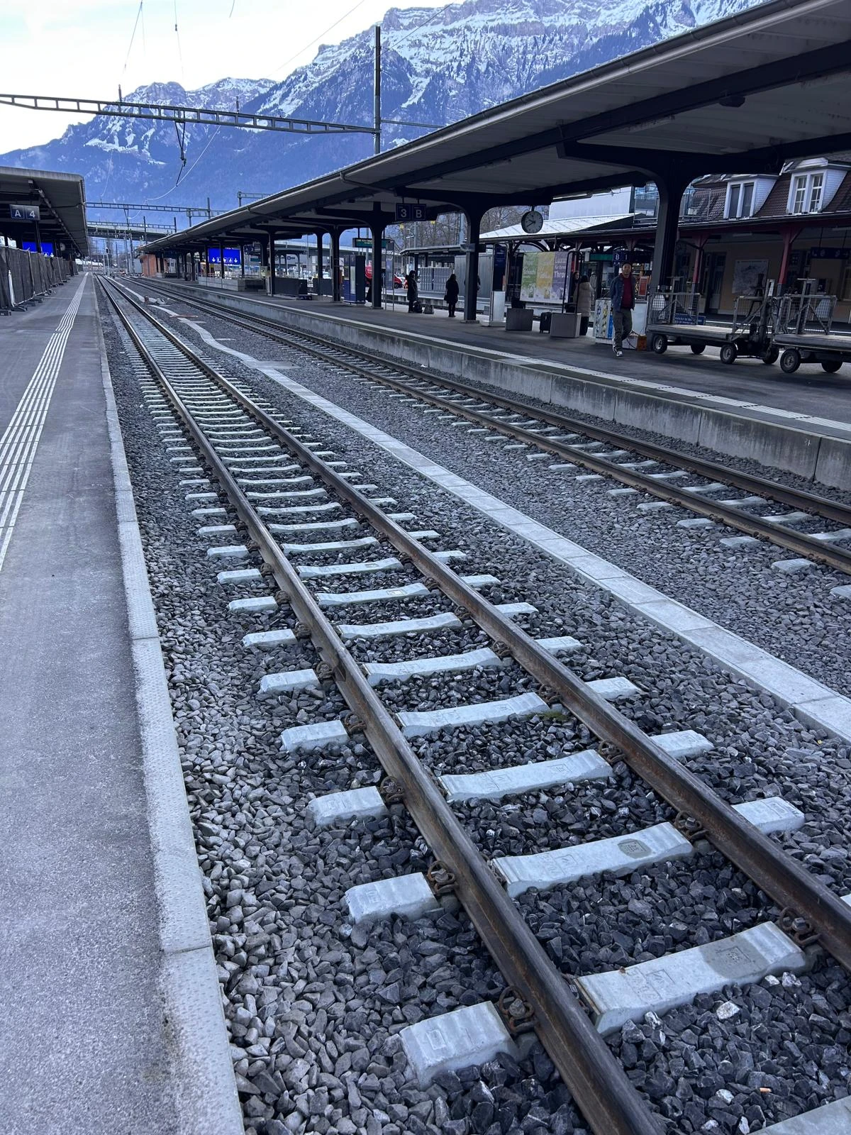 Interlaken Ost From November 4 to December 21, 2025, work will be carried out in two shifts, Monday to Saturday between 5:00 a.m. and 12:30 a.m. Exception: The finishing work on the overhead lines will be carried out on Sunday, December 14, 2025. Reserve date: If necessary, the remaining tamping and leveling work will take place on Sunday, December 7, 2025.