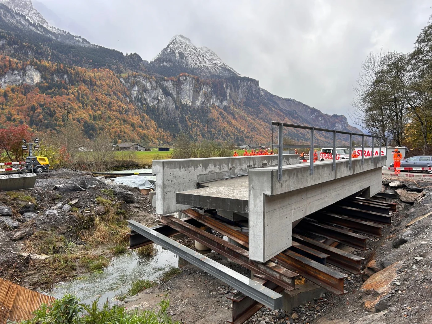 In order to exploit synergies, the Hirssi Bridge replacement project in the municipality of Meiringen will be carried out at the same time and in close cooperation. The new bridge is also scheduled to be completed by the end of the total closure.