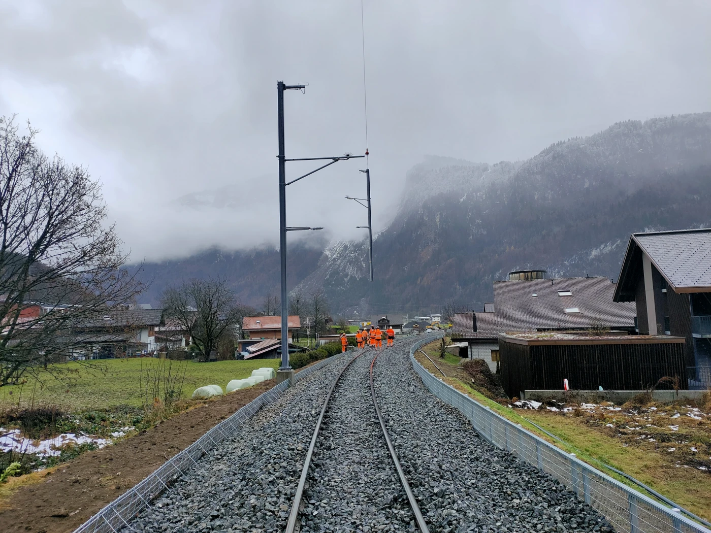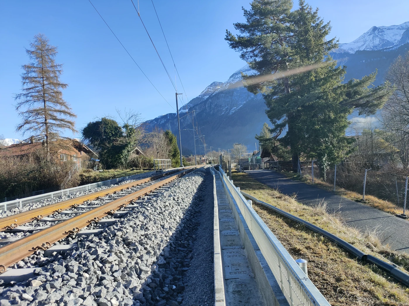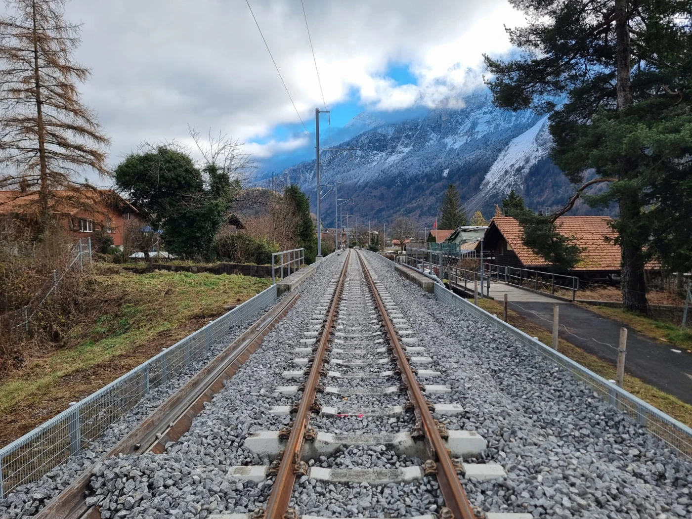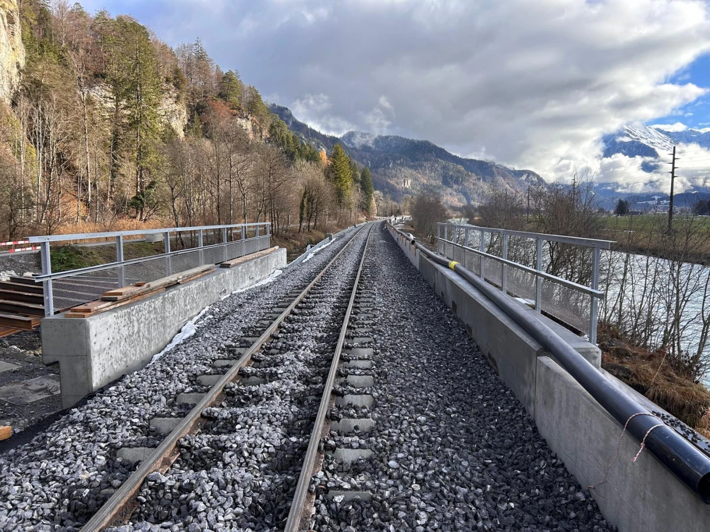 The objectives of the construction project include flood protection for the railway infrastructure, with the railway line being raised to a higher level in line with requirements from the Hasliaare flood protection project of the Canton of Bern. To this end, the railway embankment will be raised and a protective wall installed upstream to implement the objectives of the Hasliaare flood protection project. In addition, the entire track (superstructure and substructure) and the catenary systems will be replaced. The new catenary masts will be placed on the side facing away from the river.