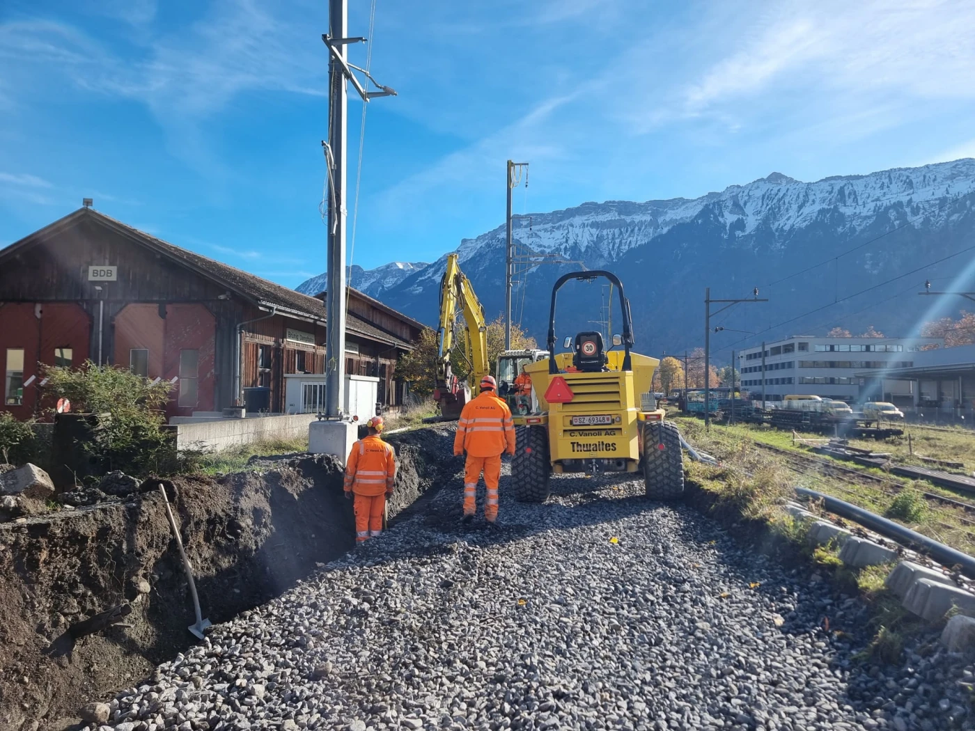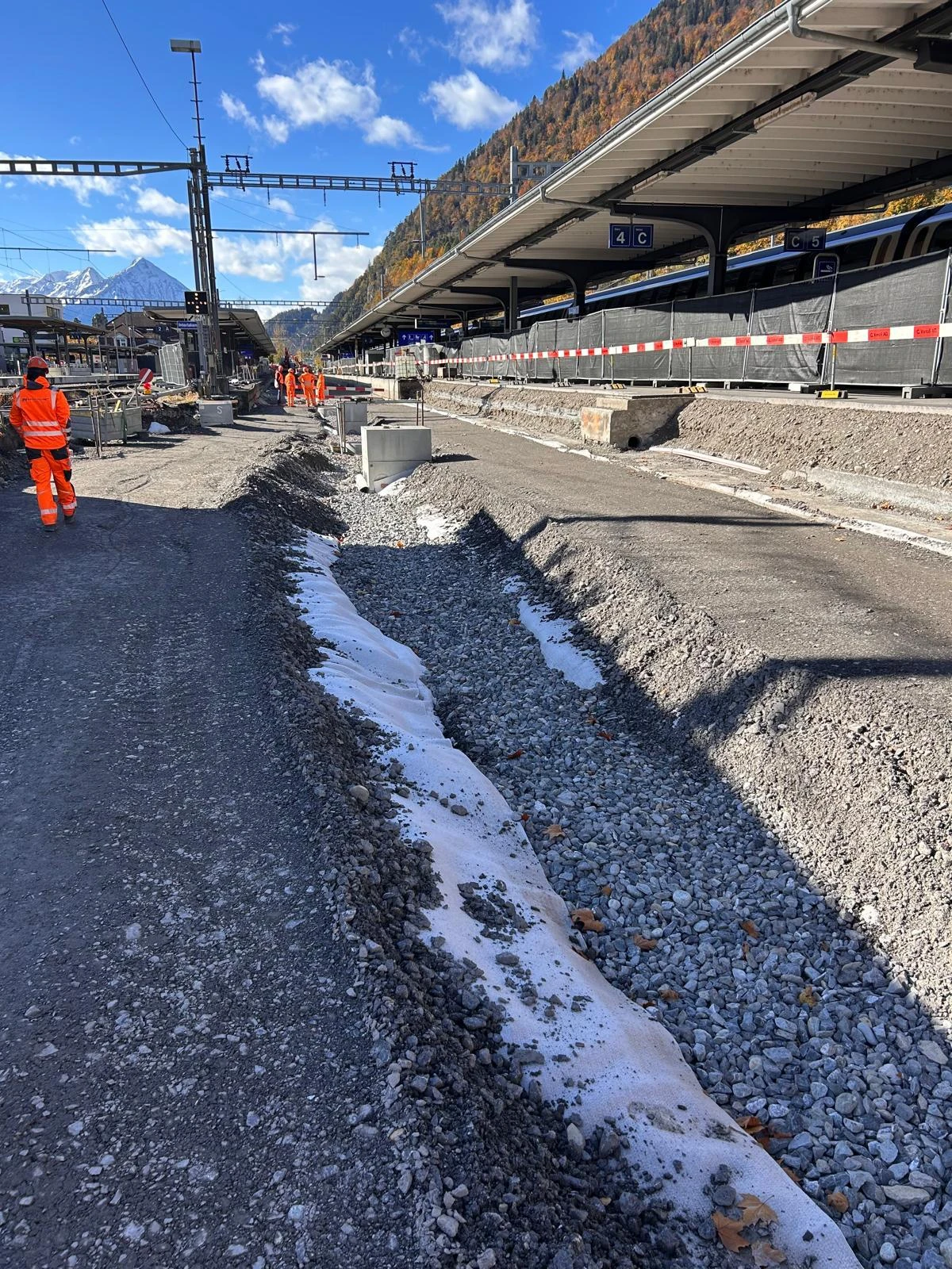Since March 2025, initial preparations for the line closure have been underway between Meiringen and Interlaken Ost. These include clearing work, filling construction tracks, and creating installation sites. This work will continue until mid-October, while rail services will continue to run without restriction.