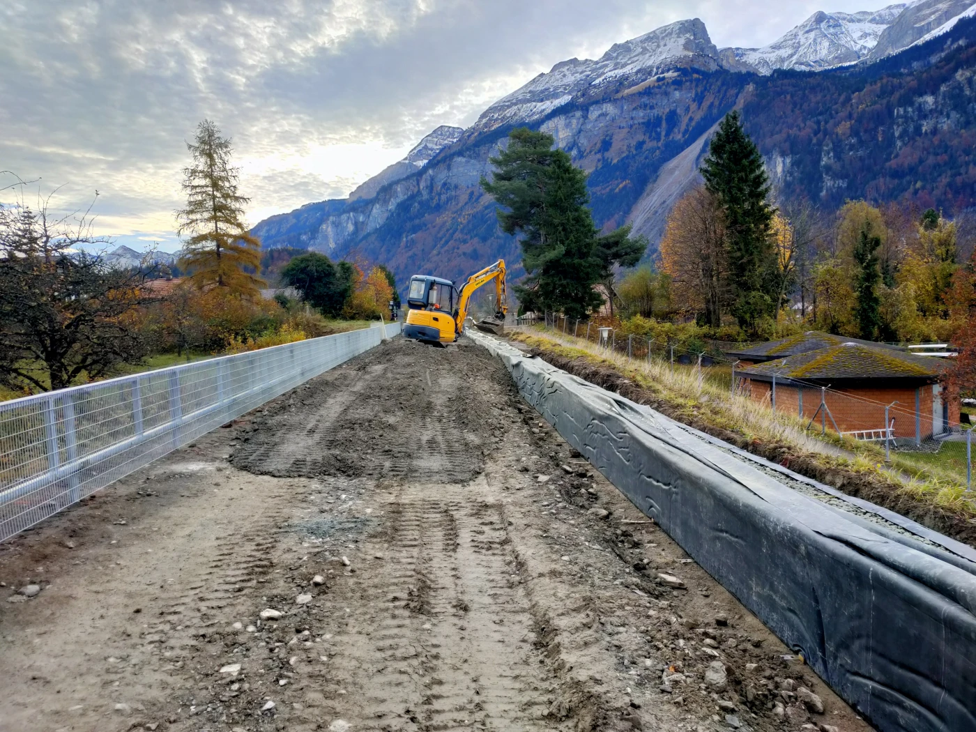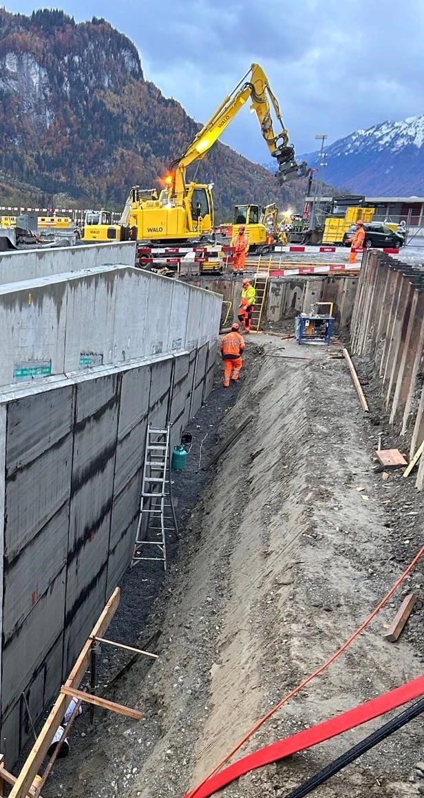 The single-track railway line between Meiringen and Brienzwiler, which is located in the Hasliaare floodplain, is undergoing extensive renovation. Due to regular flooding and erosion of the existing railway embankment and superstructure caused by heavy rain and flooding, the infrastructure of the railway line is in need of renewal. This also has a negative impact on the agricultural land behind it. The line is therefore being renovated in two stages. The first stage (lots 1 and 3) of the construction work was already completed in 2022/2023, while the second stage (Junzlen–Unterbach) is being implemented during this total closure.