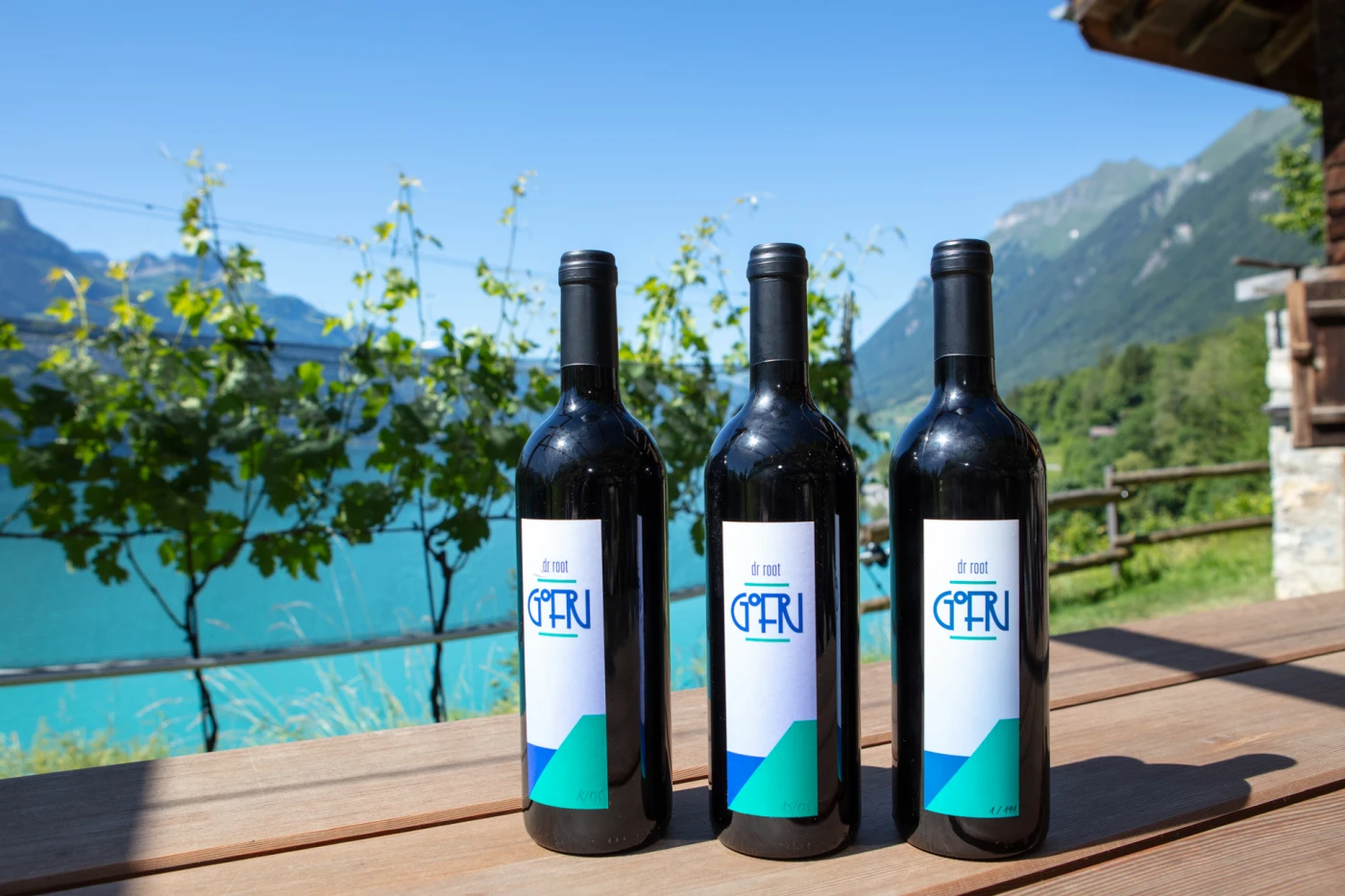 “We have created an exciting joint project”, says the president of the cooperative, Gerhard Fuchs. His handshake is strong, his voice passionate. “A few years ago, master vintner Werner Grossmann had the idea of turning his sheep pasture into a vineyard. Conditions turned out to be ideal: south-east-facing slopes, optimal thermal conditions thanks to the proximity to the lake, protection from the cold winds from the Brünig, stony and barren soil that challenges the vines. After a few years of loose cooperation between colleagues, we recognised that forming a cooperative was the solution for us.” Grossmann also contributed 2,600m² of his own land in Gofri. The neighbours were informed and one of them – Beatrice Mardon Eggler – was so enthusiastic about his idea that she made her 7,000m² of land in Chummelen available for further vineyard cultivation. The re-zoning in the vineyard register and the building permit for the terracing followed in 2017, after which the first grape vines were planted. After a full moon night in October 2020, the three-year-old Divico grape vines celebrated their first “Triiblete” (harvest). Almost 200 kilograms of grapes were harvested at a density of 90 degrees on the Oechsle scale. The 70 members of the cooperative were one step closer to their goals of producing high-quality wine and promoting viticulture in the municipality. Today, 550 Divico and 550 Sauvignac vines grow on the unique hillside site.