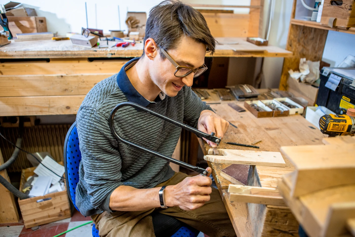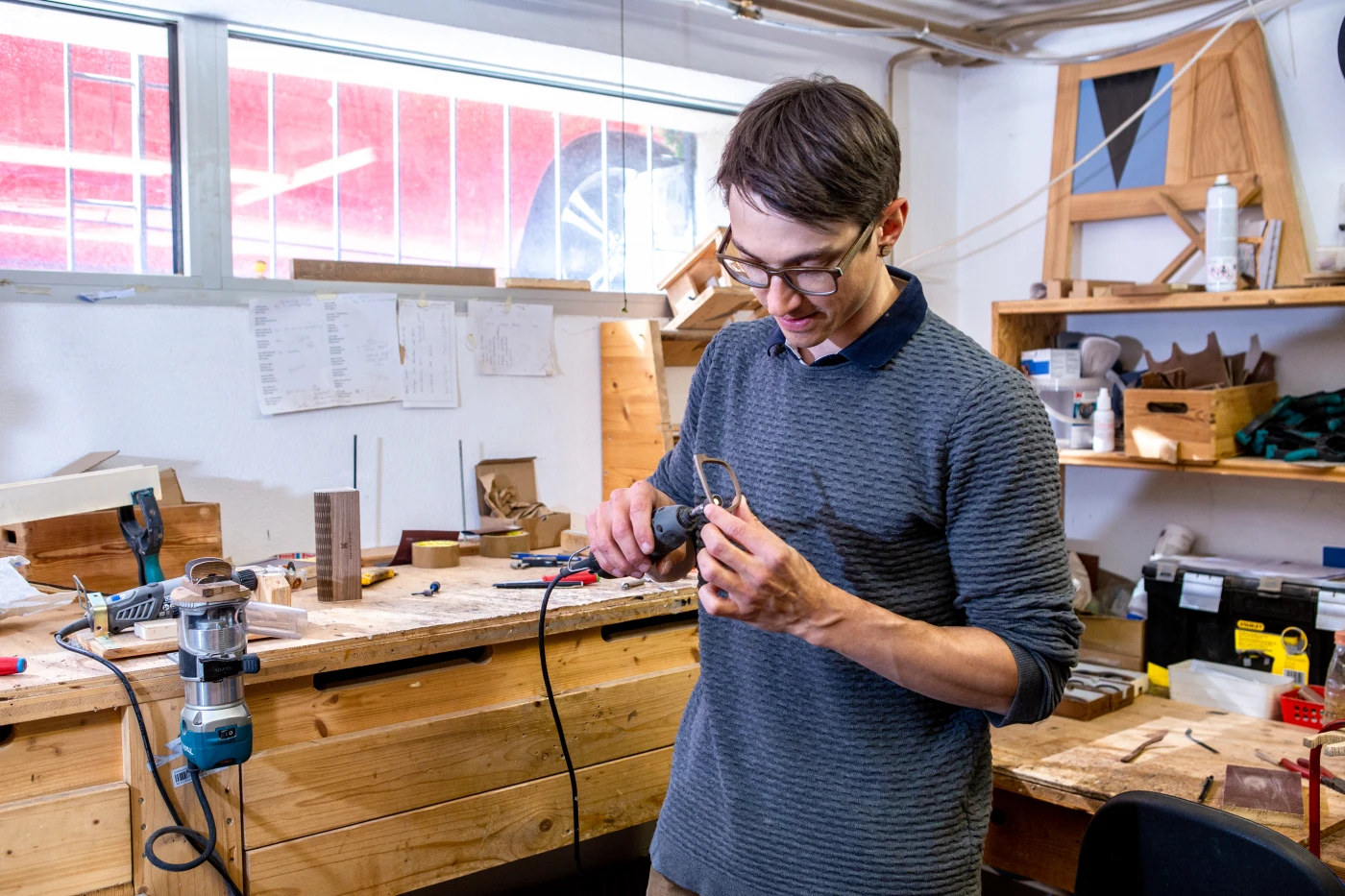 Dominik Gasser is a gifted craftsman who knows what he wants. His eyes sparkle with enthusiasm when he talks about his wooden glasses. “After my carpentry apprenticeship, I made my first wooden spectacles using local walnut wood – I wanted to create something unique.” As with so many of his projects, he succeeded in his goal of applying his craftsmanship to a solid natural product to create a unique product.