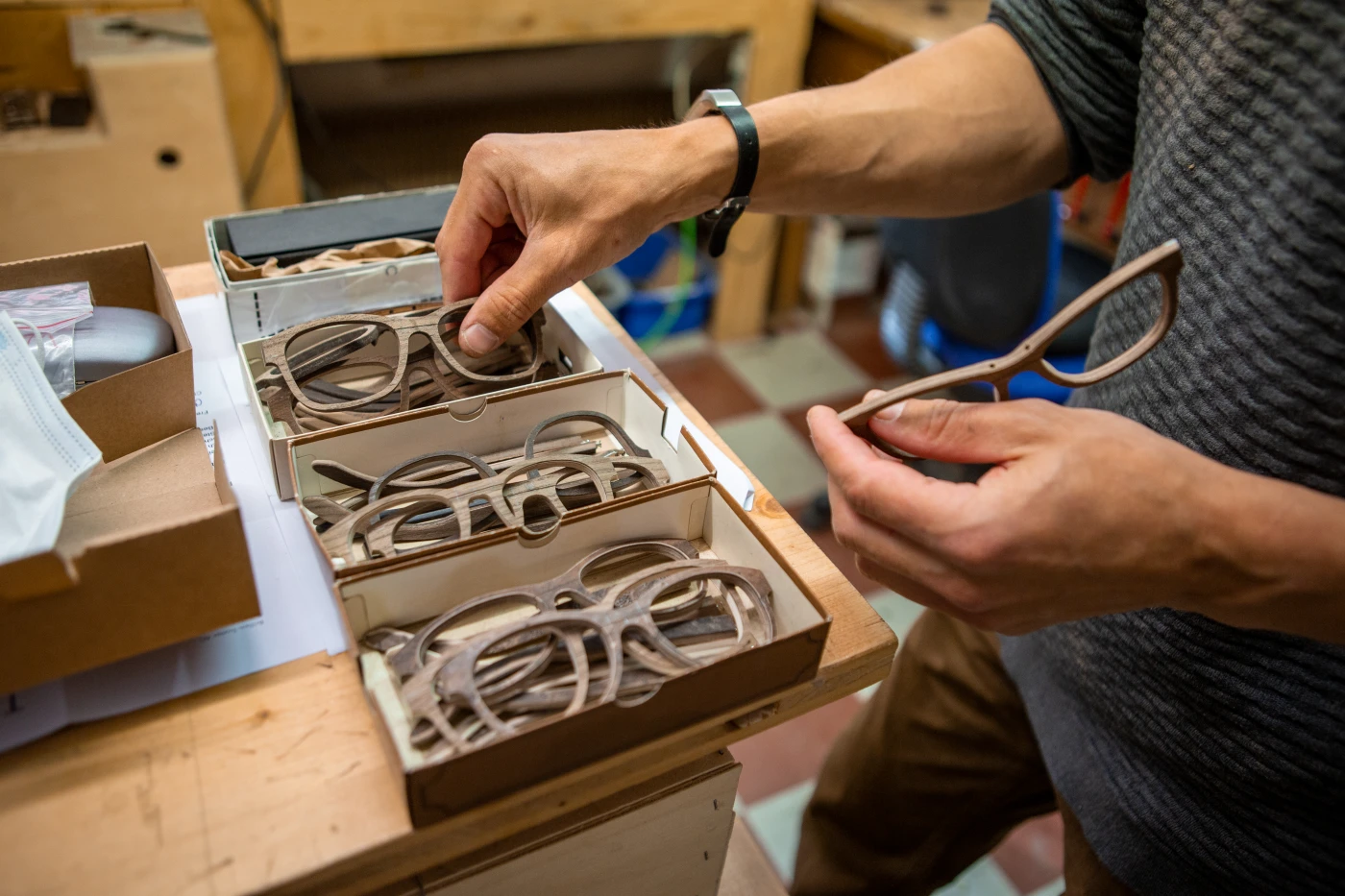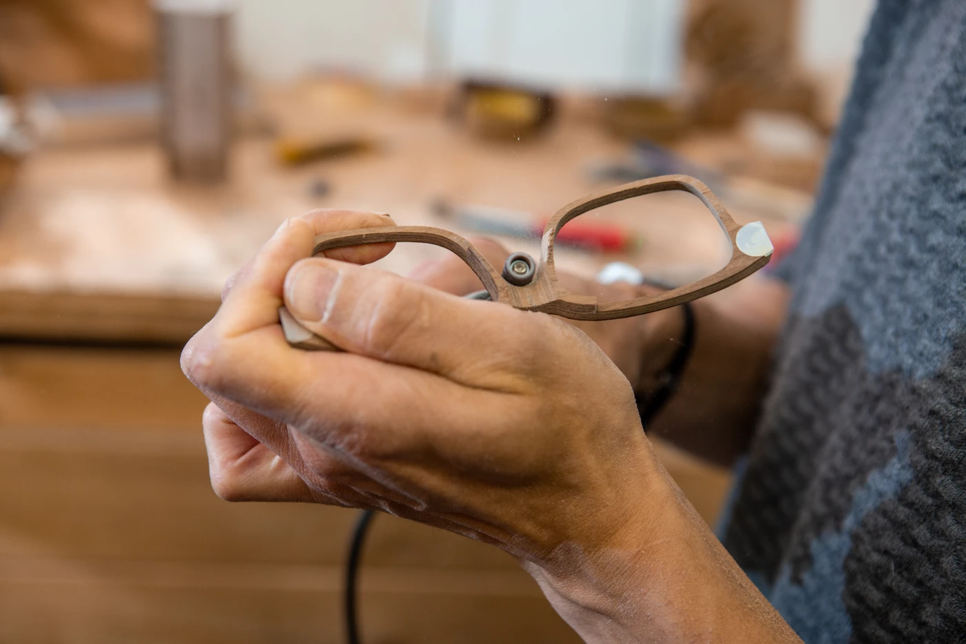 With sweat on his forehead and a pile of hand-drawn sketches, he took on the challenge. In an intensive, step-by-step process, his first wooden spectacles were fashioned from the wooden blank.