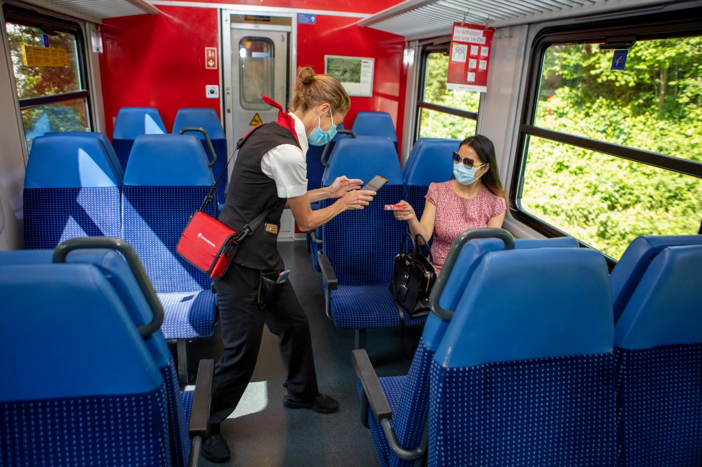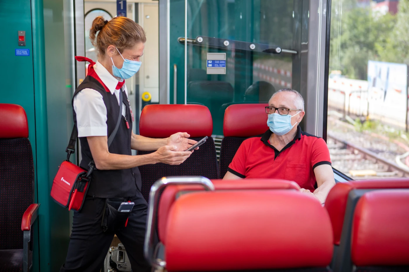 Like the smartphone, the mask is currently part of everyday life. It’s an essential component of all hygiene measures, especially when it is difficult to maintain physical distancing. Wearing a mask has become the new normal, and since July 2020 it has been mandatory on public transport as well as on mountain railways, cableways and on boats. We asked train attendant Andrea Röthlin how everyday working life has changed under the new mask requirements.